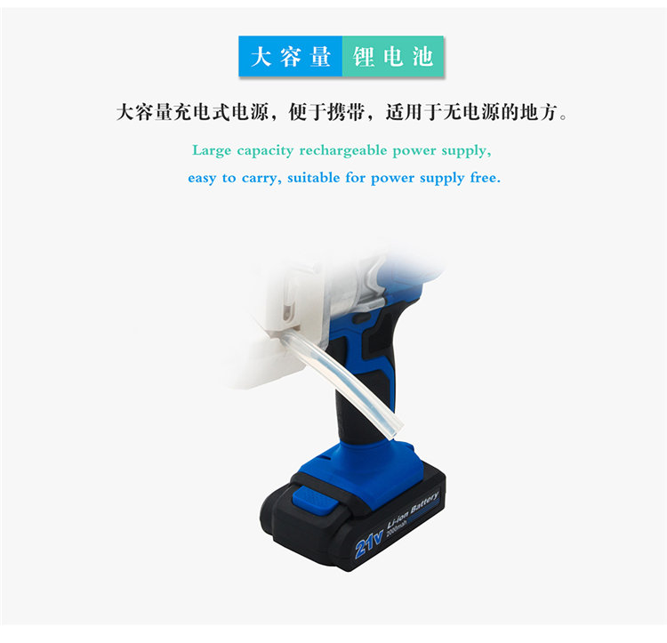 兩塊21v鋰電池,比12v的更強勁,連續工作的時間更長。 |