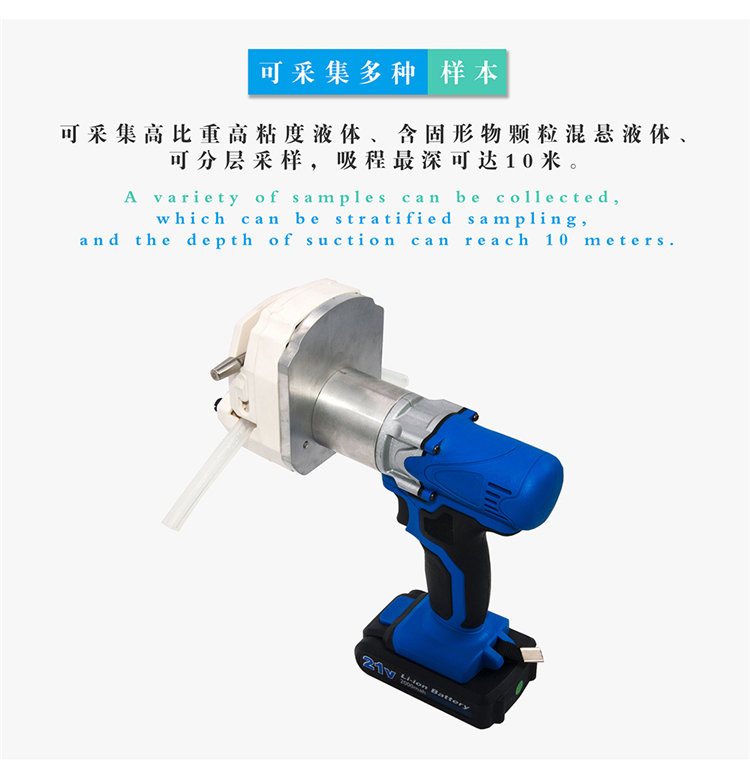 6.可采集高比重高粘度液體、可采集含固形物顆粒混懸液體、可分層采樣,吸程*深可達8米。
