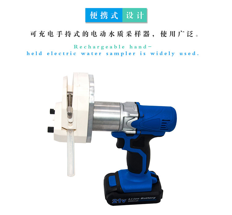 現代環境監測和衛生防疫人員,到現場采樣時,常常會因為現場沒有電源煩惱,我公司為用戶設計了一種,可充電手持式的電動水質采樣器,使用廣泛,可以采集高比重高粘度液體、可采集含固形物顆粒混懸液體、可分層采樣,吸程*深可達八米。深受用戶歡迎。