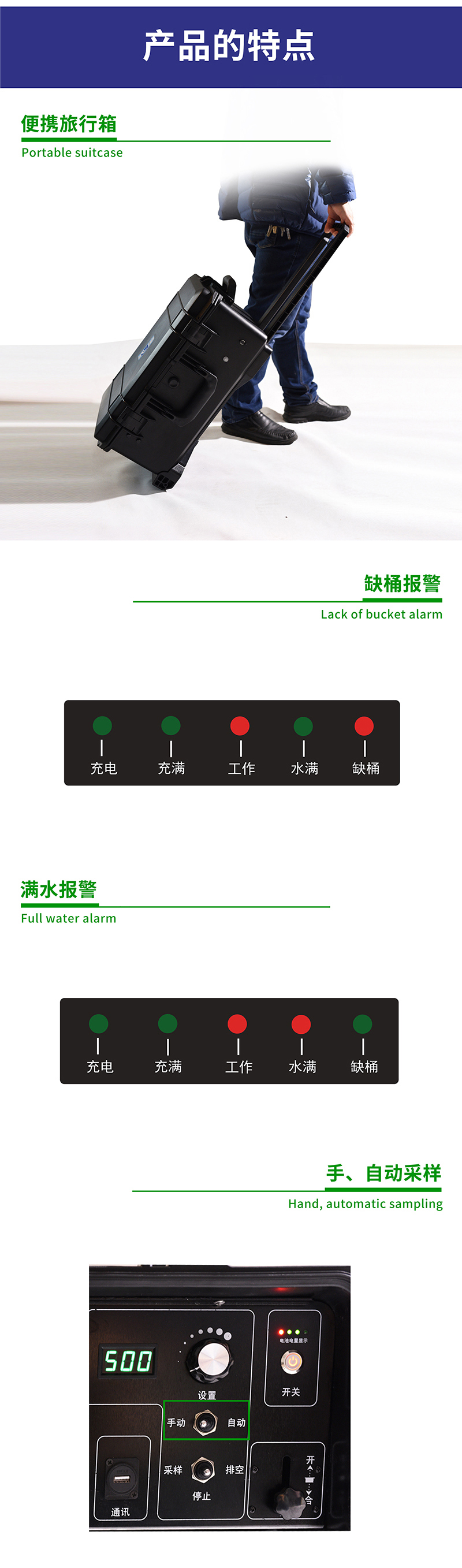 2. 采樣桶容積:10升,水滿自動檢測,缺桶自動檢測;