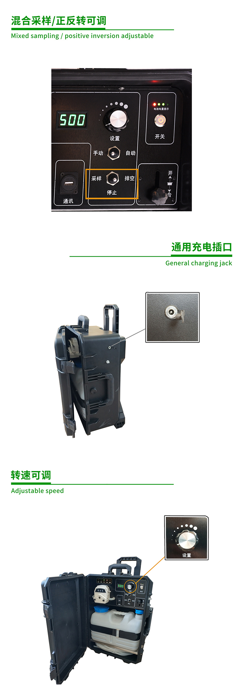 11. 具有支持手動、自動采樣功能,正反轉向可調,轉速可調;