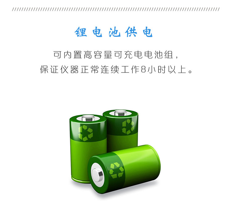 2、可內置高容量可充電電池組,保證儀器正常連續工作8小時以上,交、直流兩用。