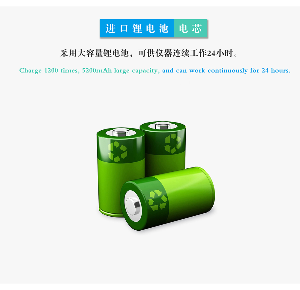 10.工作電源:內(nèi)置電池,交直流兩用;鋰電池電芯,可連續(xù)測量12小時(shí);