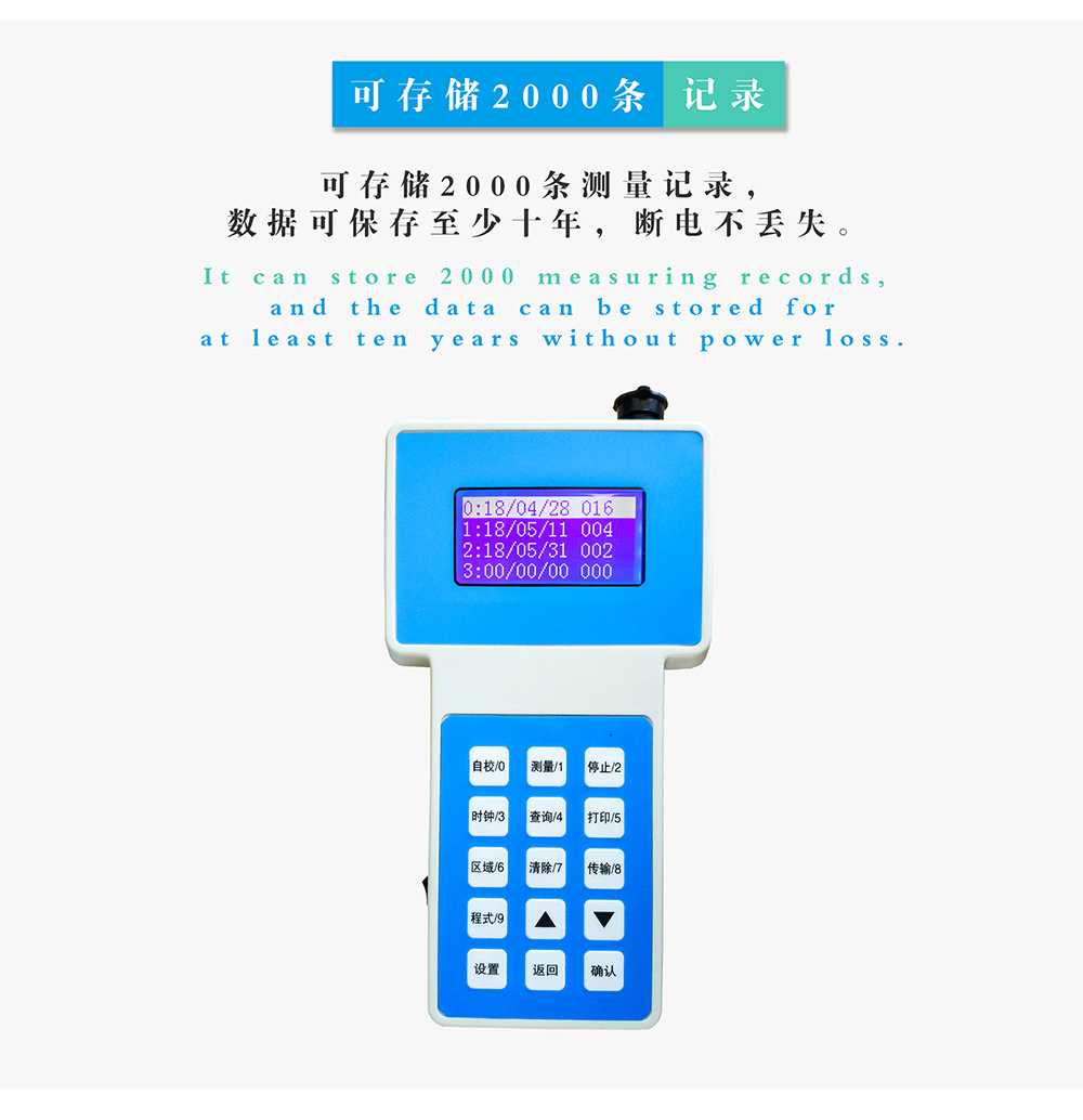 7.數(shù)據(jù)存儲容量:存儲區(qū)域10個(gè),可存儲1000條測量記錄,數(shù)據(jù)可保存至少十年,斷電不丟失;