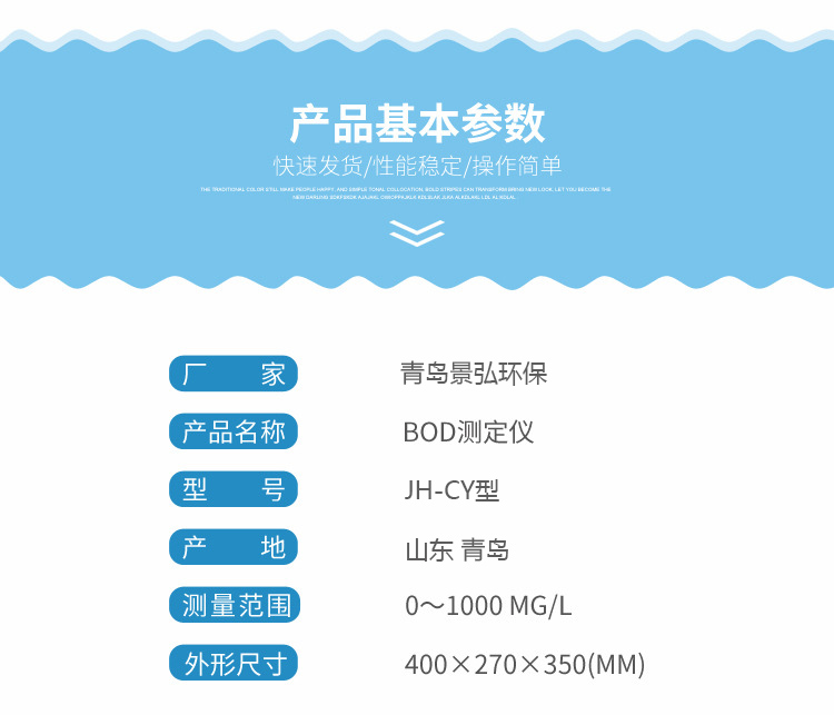BOD(生物化學需氧量)是環境水質標準和污、廢水排放標準中的控制項目,是衡量有機物對水質污染質量指標之一。JH-CY型BOD5測定儀廣泛適用于各*環保部門、水資源管理部門及公共衛生部門對水質的監測與管理。可對各種地表水、生活污水、工業廢水的BOD值進行測定。