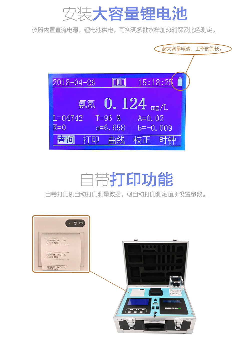 14.儀器內置直流電源,鋰電池供電,可實現多批水樣加熱消解及比色測定。