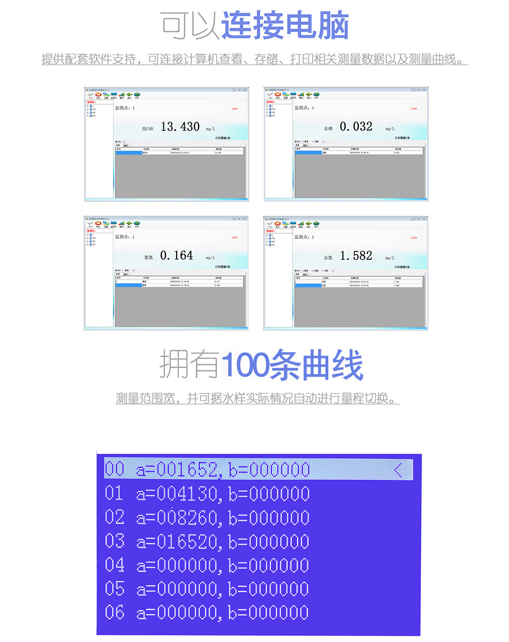 2.測量范圍寬,并可據水樣實際情況進行量程切換。