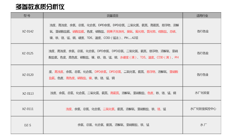 XZ系列多參數水質檢測儀適用于大、中、小型水廠及工礦企業、游泳池疾控中心、生活或工業用水的濃度檢測,以便達到規定的水質標準。本儀表應用全中文微電腦比例式檢測,光電子比色檢測離子,測量分辨率大大提高。