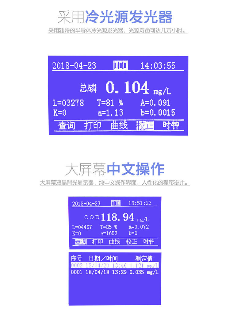 7.顯 示:240*128大屏幕藍色背光顯示器,中文操作界面;
