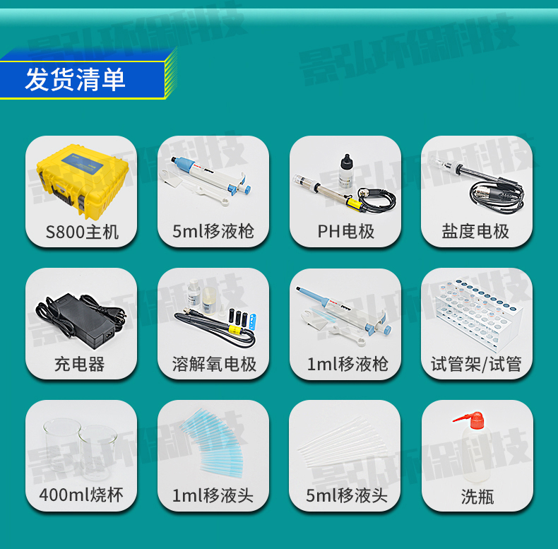 JH-HS800 型海水環境現場監測儀(標準版):【PH、濁度、溶解氧、鹽度、COD、氨氮、硝酸鹽氮、亞硝酸鹽氮、硅酸鹽、磷酸鹽】