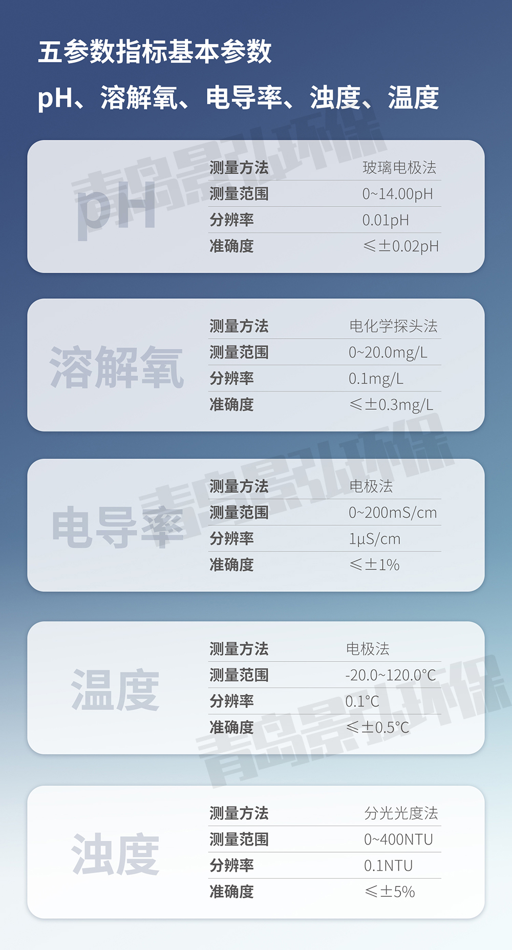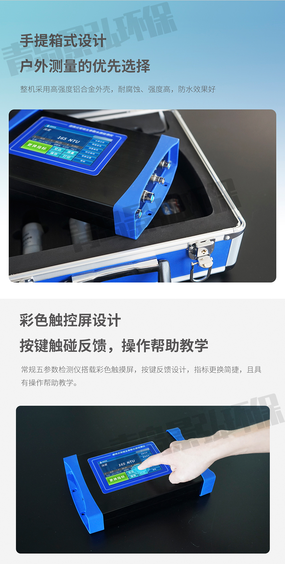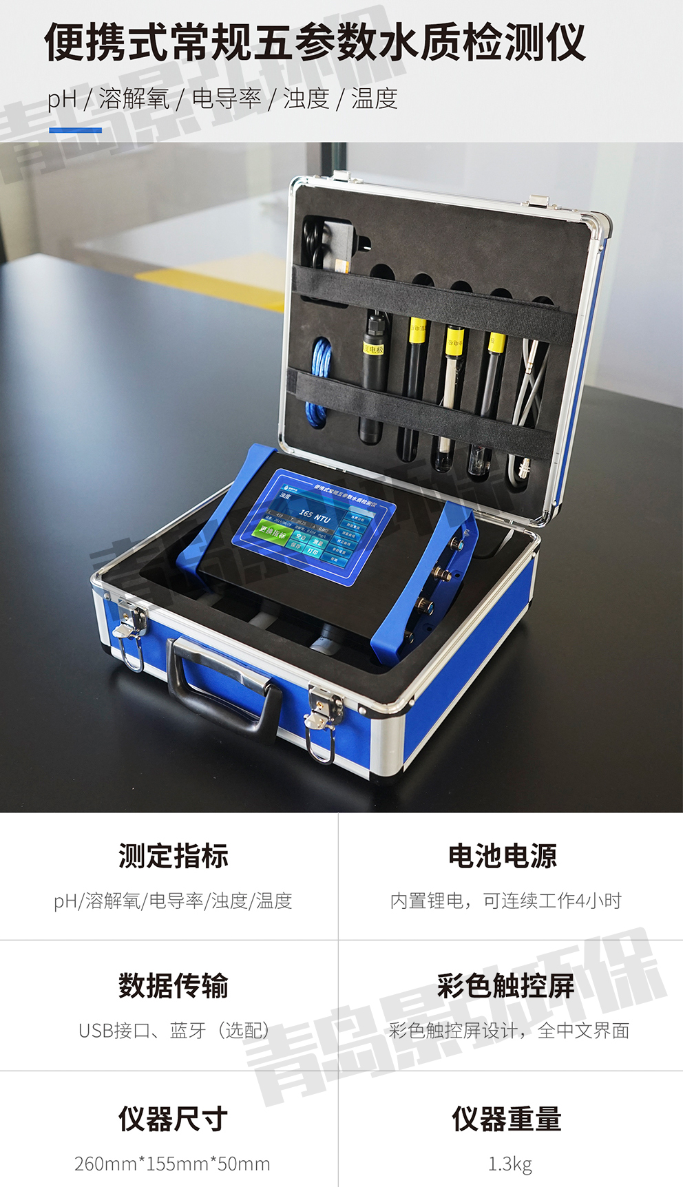 JH-TBW型便攜式水質五參數檢測儀采用彩色觸摸屏,全電*法測量,操作簡單,使用方便,整機體積小,便于攜帶,可廣泛應用于地表水、河湖水、市政污水、工業廢水、水產養殖、科研環保等行業。